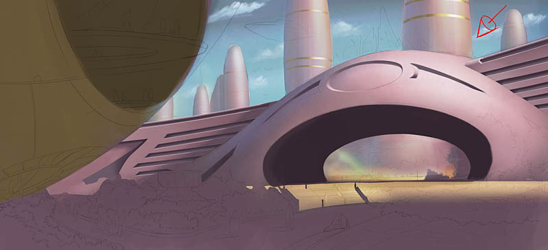 Then, I put about 90 minutes into the City Gates color pass, while running the Syd Mead color preliminary DVD in the background...