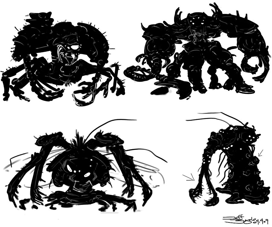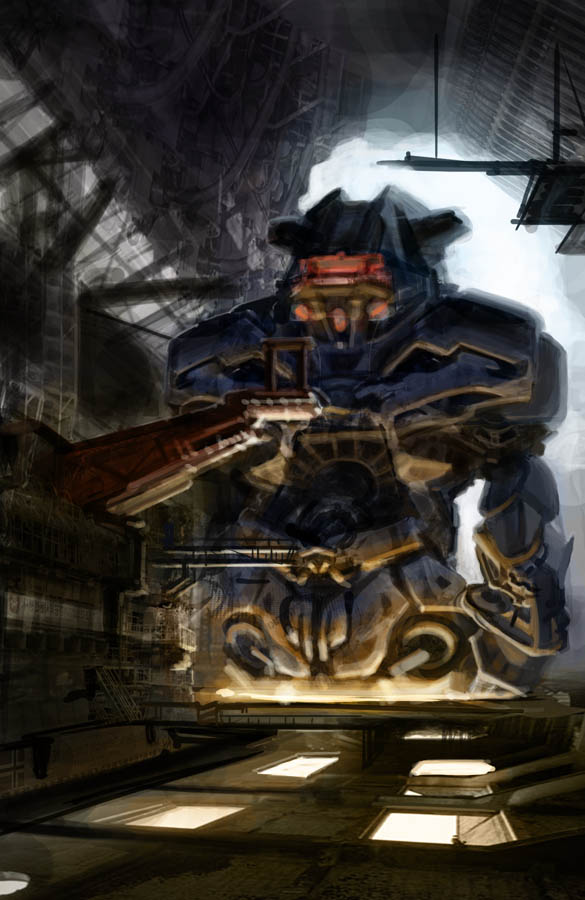 Ryan Church, who generally works in very few layers and flattens the image over and over again without saving as a new file. That's another way to always go forward, but I sometimes find myself getting mired in tweaking detail. I'm not as confident in painting as Ryan is... but then, he's got a good 15 years on me, probably a bit more. :) I'm better doing it that way if I've done a tight line drawing first; Khang's method allows me to start from a simple light/dark mass layout and build without a drawing, but still get interesting detail and shape in a very short time. Good to know.