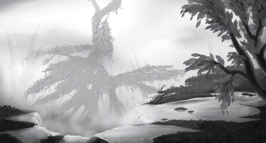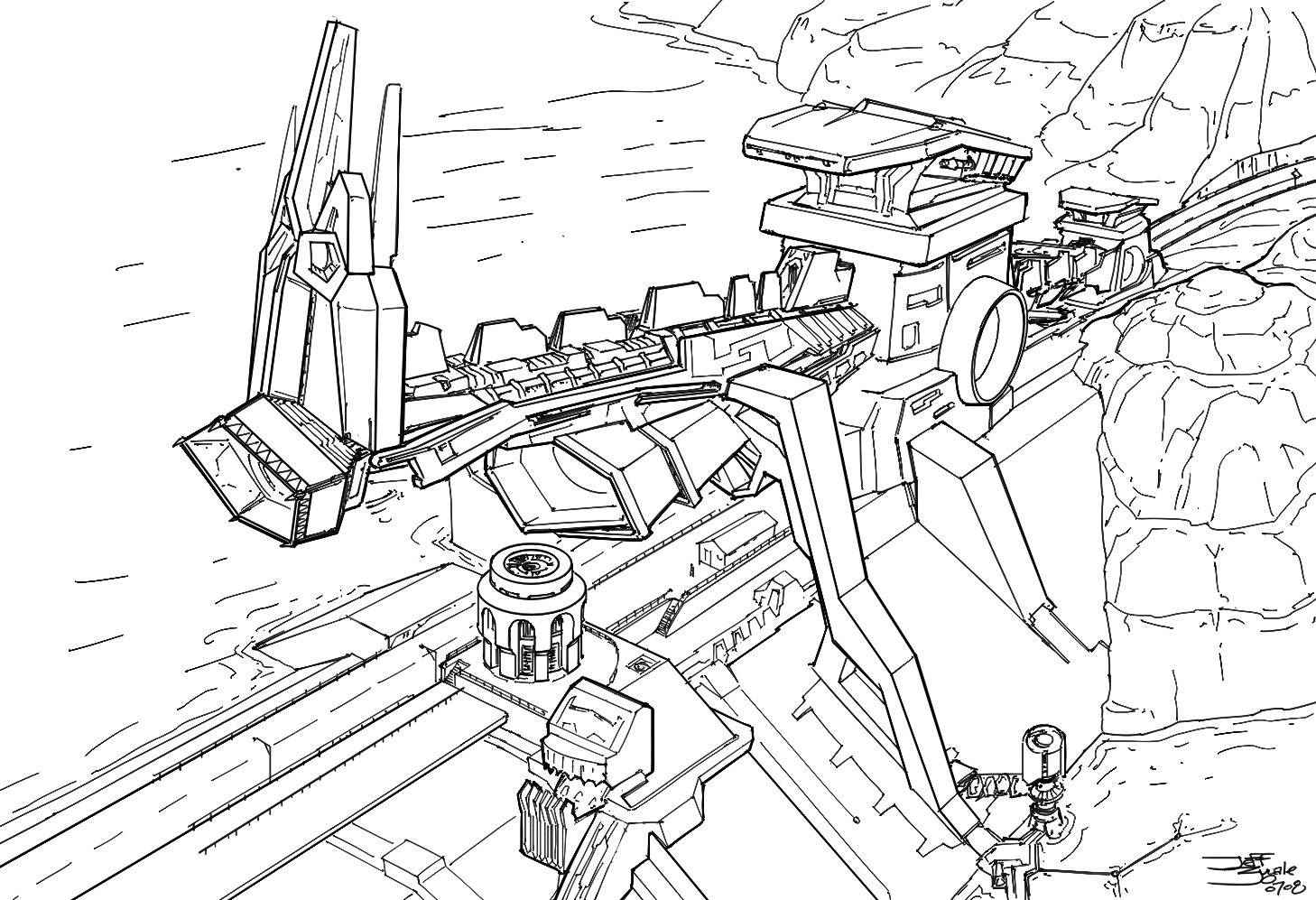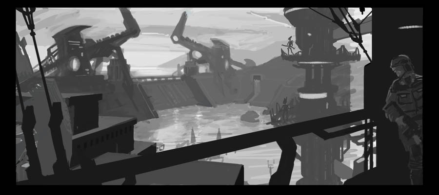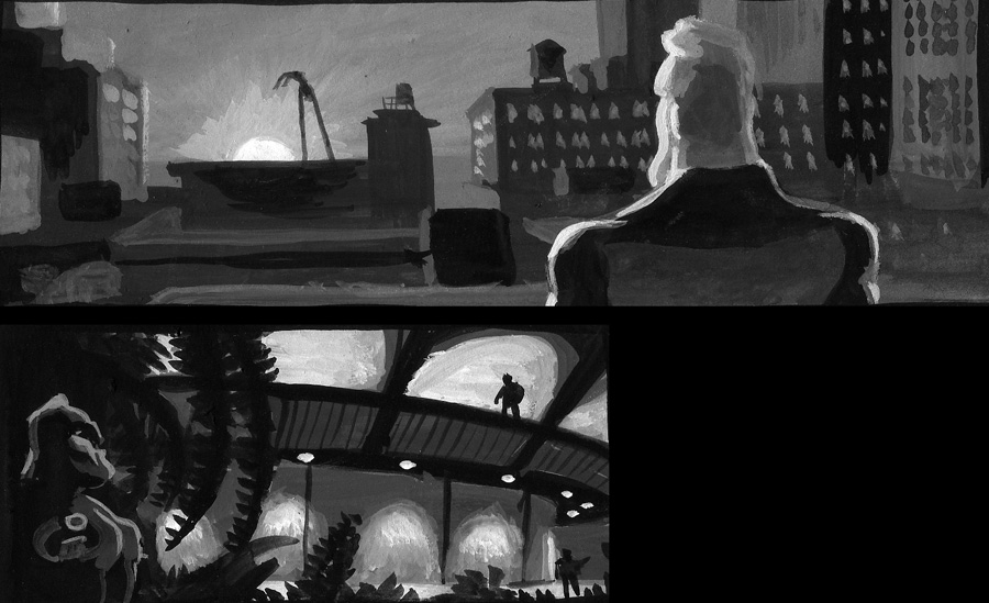 And here's an unfinished painting I was working on to help establish the lighting mood at the base of the tower: